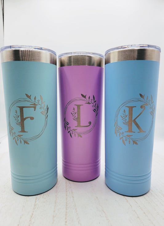 Personalized Initials X,Y or Z Floral Wreath Skinny Tumbler