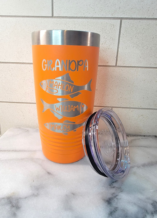 Grandpa, Grandkids Engraved Fish Tumbler